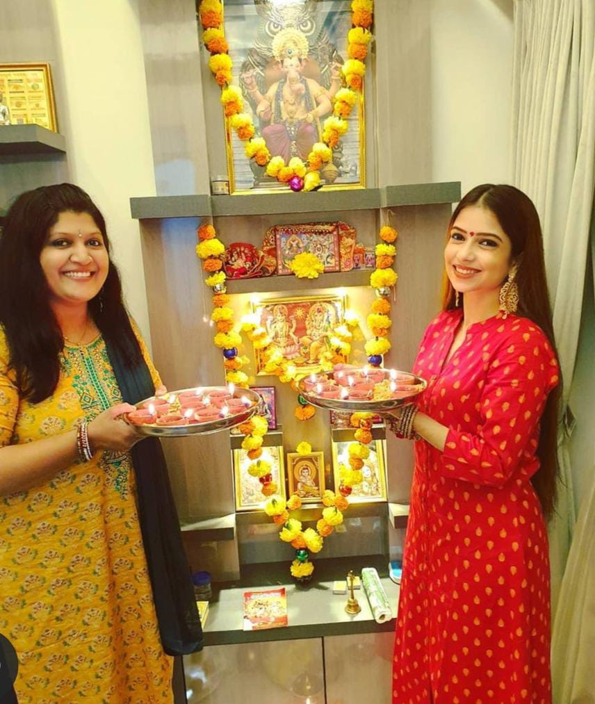 Well known TV actress Pooja Singh celebrated the festival of lights with her close pals at own house. She shared some of the pictures of her festivities.