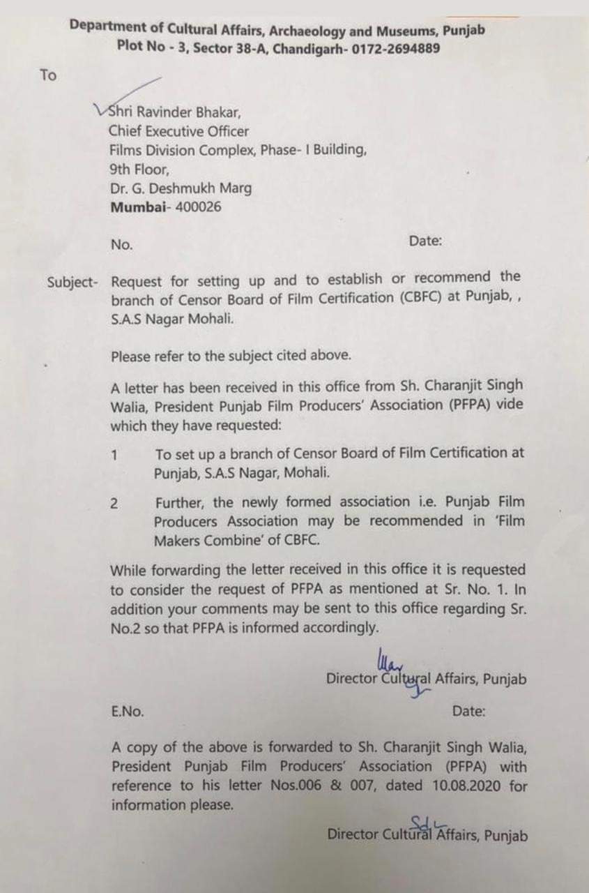 Punjabi cinema has made a lot of progressions over time. Now the President of Punjab Film Producers’ Association, Sh. Charanjit Singh Walia has taken an initiative for the betterment of Punjabi cinema. He has requested to set up a branch of Censor Board of Film Certification at Punjab in S.A.S. Nagar, Mohali. He has also called on for the newly formed association i.e. Punjab Film Producers Association to be recommended in the ‘Film Makers Combine’ of CBFC.